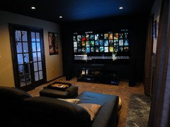 First you need to get a bigger T.V and some surround sound equipment , a cabinet to house all the wires parts etc., blackout blinds for the windows and some comfy seating for at least as many people as you have living there. This will never be an actual home theatre as you can not close it completely but it can be quite good with some imagination.
