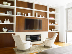 the best suggestion would be to contact a design professional or a cabinet company to assist you, as a project of this nature could take hours to design and refine and then the production time for the design needs to be over seen by a knowledgable person good luck....this is a for pay type of design issue