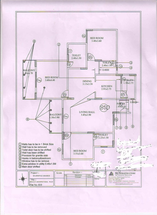 1) Moved the entrance of Bathroom 3 to accommodate one washbasin near dinning.