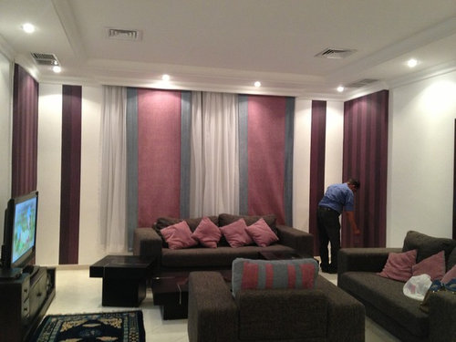 My curtain is light purple with blue and I placed my wall paper in the two corners now I'm in trouble coz I realize that I put so many colors and all are dark plus it's started to be lack with homogeneous .. Can I know what carpet color to put and do I need to color the walls ?