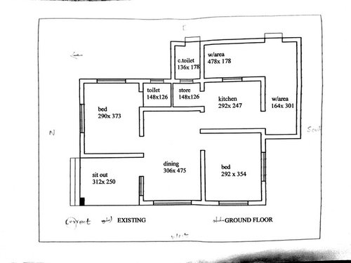 Original Author7 years agoMain window is thru the sitout.north facing.and in the plan .,the outside toilet and work area is extra extended from basic foundation.