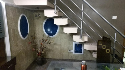 In case there are no space constraints and all the other areas are taken care of, the space below the stairs can be used for add ons such as a library, study, cellar or a minibar. In case there are any dogs in the house, this area serves as a spacious and compact kennel too :