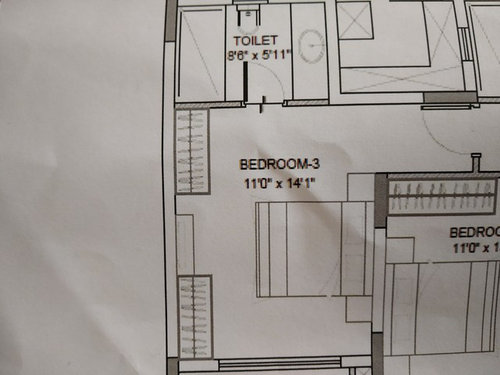 I have got a 11ft×14ft 1inch size room which needs to be designed for master bedroom. so there is a small corridor after the door. I want the king size bed to go on the bigger wall. dresser should be in the corner right after you step out of the bath and the wardrobe will go on the opposite wall of the bed. please help me design this room in a modern way with the furniture orientation, wallpaper/textured paint, false ceiling (or not?)where should the wall shelves go which I definitely need to display the photos /showpieces.TIA