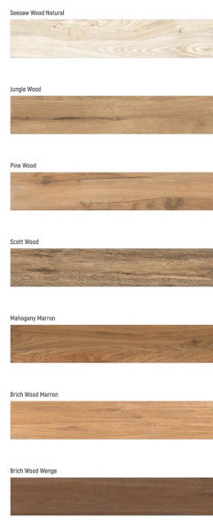 Nowadays the wooden planks tiles are very popular due to their aesthetic feel and unique designs concept. An infinite number of tile possibilities can be achieved with the help of inject technology. Realistic wood patterns are also available.