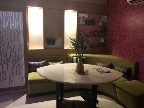if u are interested in art work.. you should definitely go for some bastar art pieces.. beautiful vases in contrast colors to the dining area will also comprehend the look