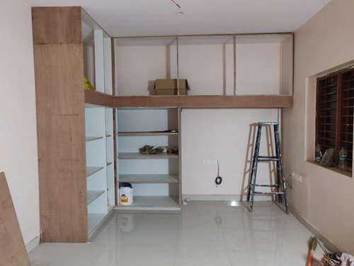 I'm looking to create home office and my taste in colors is questionable. I need help in choosing good colors for lamination for office wooden wardrobe/cabinet. We have built the initial structure already but I would love to hear new creative ideas for making it as royal and modern as possible. Your suggestions would really help me set it up. Please see the photos attached.