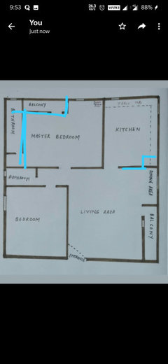 you can create a niche in kitchen wall aproox 30" wide and 21" deep for common basin so the drain could be connected in kitchen drain and in bedroom shifting bathroom would be a good option