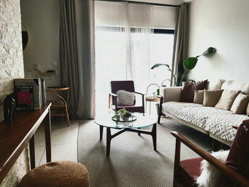 This is surely going towards a minimalistic looking space it has neutral and warm colors, with a hint of subtle pops of natural green and Sunset yellow. Really calming at a glance. You can definitely amp it up with little textures layered here and there, Play with fabrics, its always fun!! Go with some minimal art too accentuating those accent colors, but nothing too dramatic. It will elevate this space, Like from sky to Heaven!
