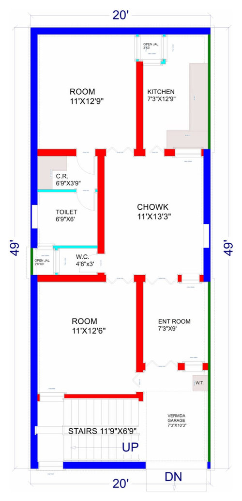 Looking at the placement of staircase in the front I'm guessing you plan to rent the above floor (or the lower floor). If not then I'd suggest you revise your entire plan where you have good natural light and ventilation since the current plan has rooms that will turn out to be very dingy and dark even during day time.