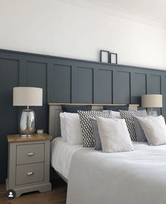You can opt for wooden batten 4-6 inches above the height of your bed back or say headboard. These can be painted with the paint that we use on walls. But proper putty & pop should be done. Refer image