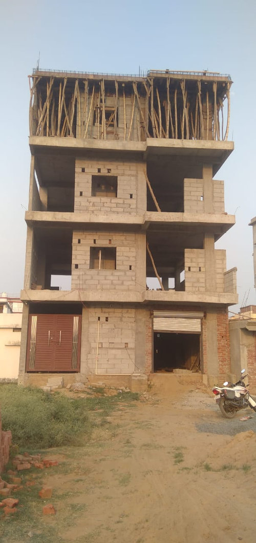I want to make a good front elevation for my under construction G+4 building while looks likes right now in the picture given below.