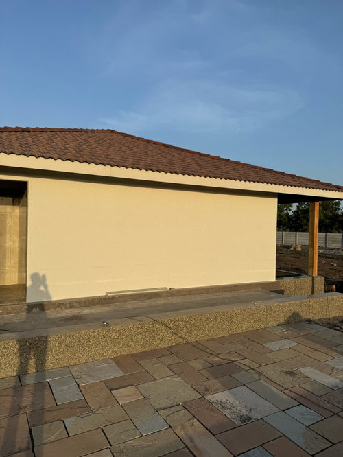 I am looking for the suggestion which color looks better on the outer wall. We have terra cotta roof. Have attached the picture.