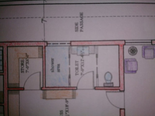 and maybe if required extend the shower area out into the cupboard area by 1' , leaving the cupboard only 6'' or so deep like perfume shelf in dressing