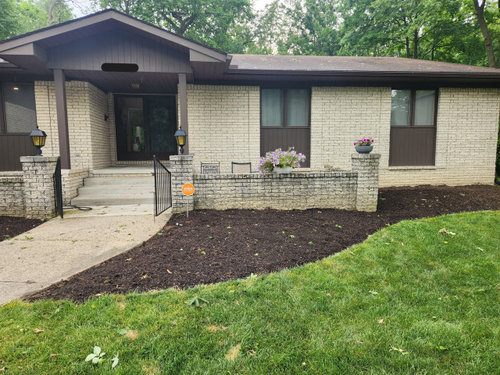 What we're struggling with is the design for the garden beds directly to the left and right of the walkway leading to our front door. The left garden bed is approximately 12 feet wide by 11 feet deep and the right garden bed is roughly a right triangle, 14 feet wide by 11 feet deep at its deepest point next to the walkway.