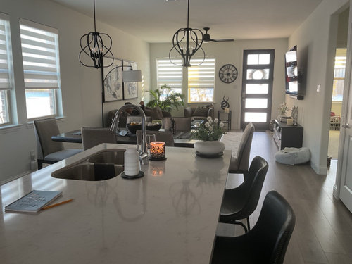 i have a new construction home in Dallas with no Foyer. This is new for me. I have downsized significantly and have a new home that now does not have a foyer or formal entry way. My front door walks directly into my living area.. The TV is on the wall and the Living, Dining, kitchen are an open format. I need help to Warm up the space, and not feel like i fell into my house when you open the door.