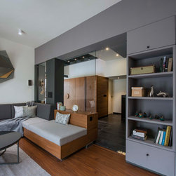 This renovation of a row house in Ahmedabad involved creating spaces that flow into one another to make it seem as open as possible. A warm, muted palette of Kadappa stone, wood and perforated metal sheet is used in the common living spaces. The simplicity of the design reflects the simple values and lifestyle of the family residing in the house.