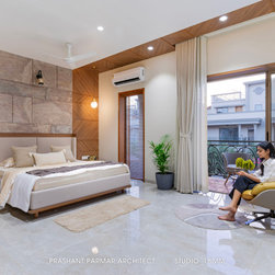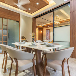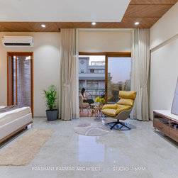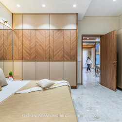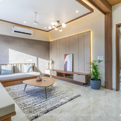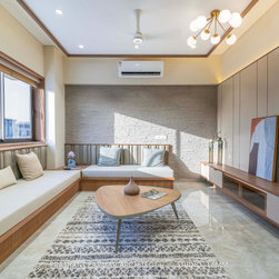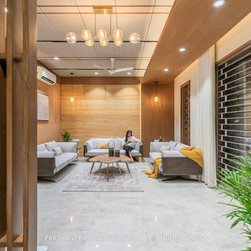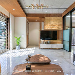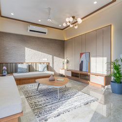 This is a 4 member NRI family bungalow having a total carpet area of 4000 sq.ft. with 4 bedrooms along with a drawing, family sitting, dining & kitchen. The client wanted the interiors to be stylish, subtle & under-stated luxury but at the same time it should have its separate functional value. It was our motive to make the overall interiors such that the spaces enhance the overall lifestyle of the occupants.