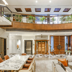 The peaceful bungalow in Muzaffarnagar by Geeta Vaibhav Architects echoes notes of calmness and tranquility through its Zen-invoking custom water feature. With a seated statue of Buddha on back side, the water body takes on a classic oriental touch, emanating peacefulness and poise. Combining simplicity with traditional features to create clean and striking spaces that are timeless in our memory. Having original items like ornate mouldings over doorways and in the corners is an easy way to have the original classic style blended in with the modern flare. Each room has its own individual style, as per its usage and yet, the same design language flows throughout the house. Touches of classic design are imbibed, by adding fluted details on ceiling coves. A space in the Modern Classic interior design style that evokes cleanliness, simplicity, elegance, boldness, warmth, purpose, sophistication, and character as well as the homeowner’s individuality.