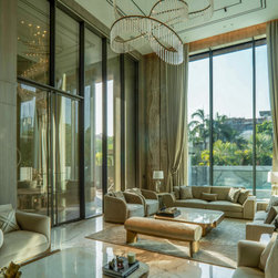 The "Abode of Cosmic Calm" is a contemporary, low-maintenance residence located in Nagpur, India, spanning 10,000 square feet. Designed for a family with a deep appreciation for art and creativity, the home reflects their desire for understated luxury, timeless aesthetics, and functional spaces. The design balances communal areas and private retreats, fostering togetherness while allowing individual expression.