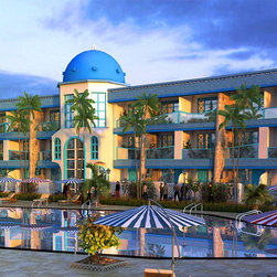 • Geometric Architecture- Circular buildings with columns and pergolas for interplay of Sunlight and Landscape.