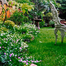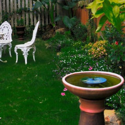 The seating space with a nearby birdbath and bushes to play, the residents here enjoy the world of tiny birds like a housefull movie.