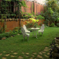 The ugly walls in the backyard is covered naturally by creepers, hence suggested lattice onto them.