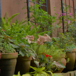 The terracotta pots has a magic effect on the overall landscape, not just with colors, but also blends with the surrounding nature to harness the moss around them.
