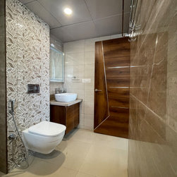 Standard bathroom with Geberit concealed flush tank and Jaquar sanitary fittings.