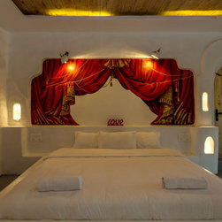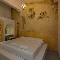 This room offers a comfy and luxurious atmosphere as beautiful hand-painted chandeliers, arches along with angels adorn the room.