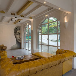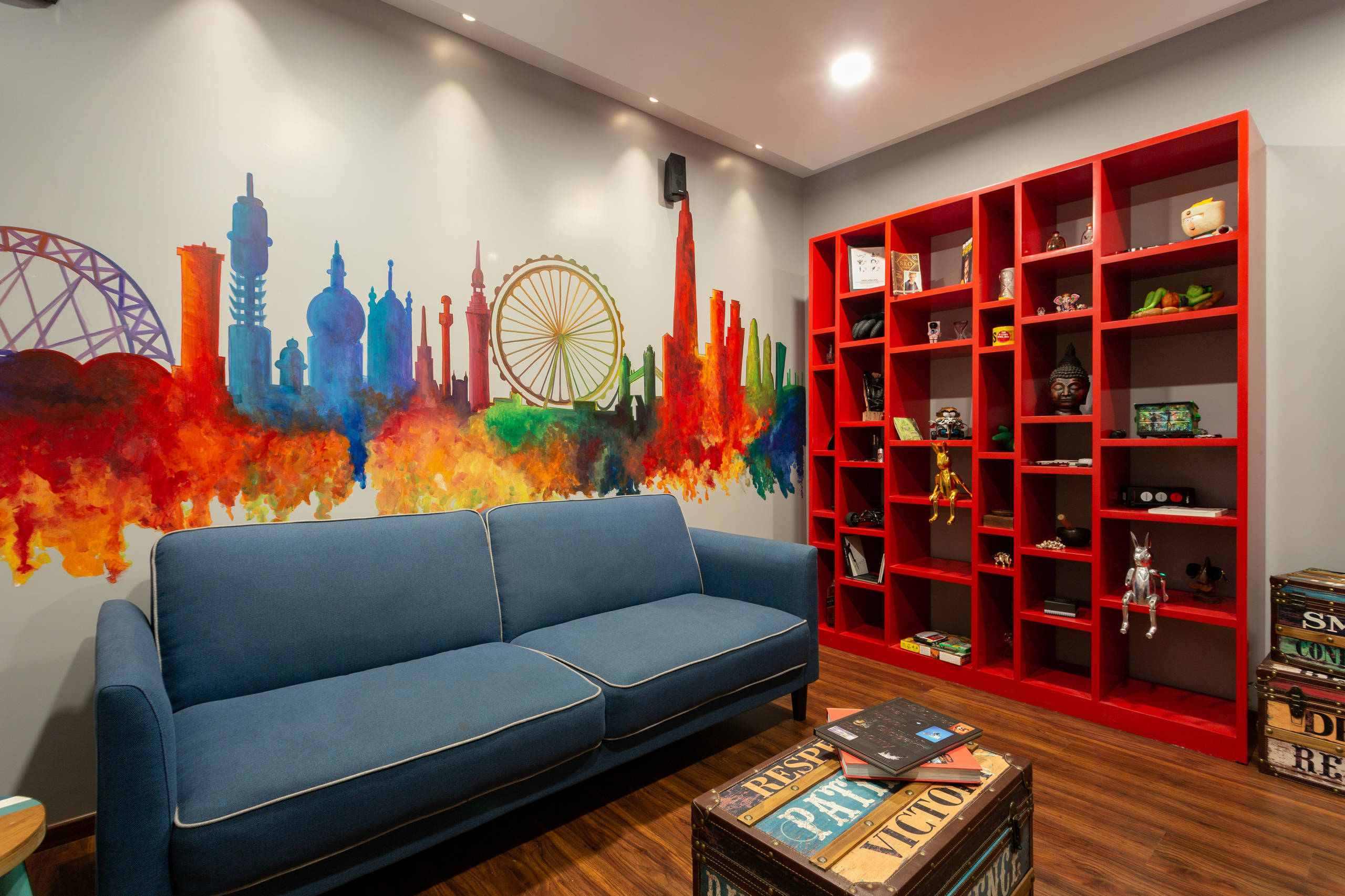 The snap shows the view of the grand living room adorned with hand-painted wall murals and decor accents from our home brand, Iheathomez.