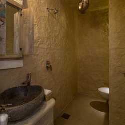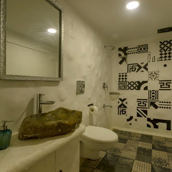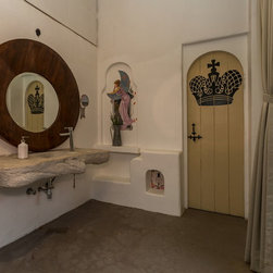 The bathroom fittings are contemporary and simple but the basins are stone carved to go with the beautiful custom made mirrors sourced from our home brand, I heart Homez.