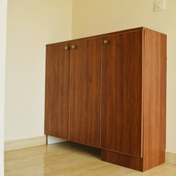 Vertical shoe rack with provision for inverter and battery unit