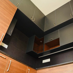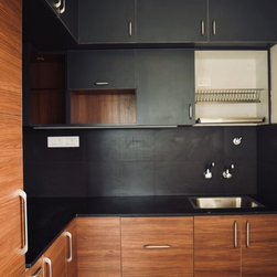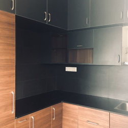 A mix of black and wooden theme with under cabinet lights, Hettich hardwares and much more.