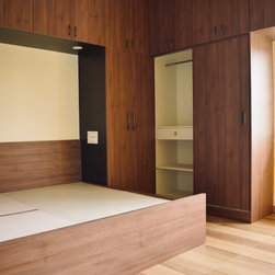 A bedroom where you will never run out of storage space.