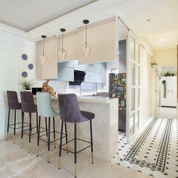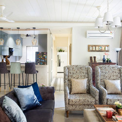 The client purchased two side-by-side flats and wanted us to seamlessly integrate the two into one residence and also create a home that followed a design story close to their hearts: a European country house. We had to make several structural changes to this home. We changed the flooring, moved the kitchen around and redid the bathrooms. This home was originally a five-bedroom home which we converted into a three-bedroom house, plus two extra rooms that serve as a walk-in-closet and a home office