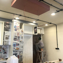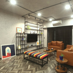 For the living room, to enjoy the full height of the space, all wiring is done in exposed Pvc pipes which adds a to the industrial look.