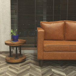 The chevron pattern on the floor runs in the entire living- dining section, making it visually seem like one large space.