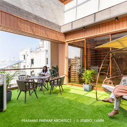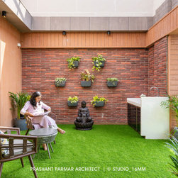 ??????? ??????: This is the favorite place of the client in his house where he spend most of their quality time with family in the evening in the vicinity of nature. The provision of automated sliding roof top upon this beautiful terrace garden creates a cozy space to enjoy even in the extreme weather conditions. The natural brick cladded wall enhances this cozy garden space.