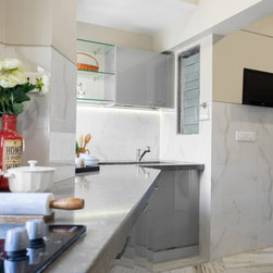 If you have a partial eye to straight lines and symmetry, this revamped kitchen will have you right at the entrance. For most Mumbaikers, the Maker Tower in Cuffe Parade needs no introduction. Towering over the Mumbai skyline, the more than 20-year-old building is home to Nitya Tejwani and her husband Kamlesh. The family having relocated from the U.S wanted their beloved kitchen to stand out in a contemporary vibe and most importantly, have all the amenities updated.