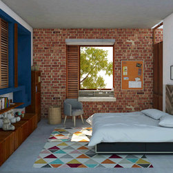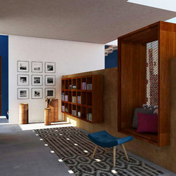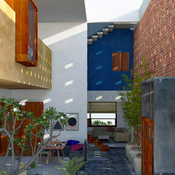 A young family of three voracious readers asked for a house with ample storage for their books and nooks to curl up and read them in. 60’x40′ site, basic Vaastu compliance.