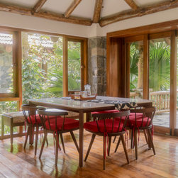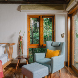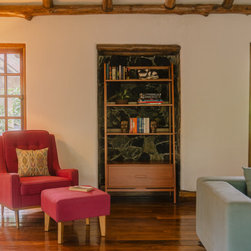 This interior design project is a collaboration between Umber and Divya Runwal – a fashion designer turned art director. We approached the house as a series of sets. I brought a love of Corbusier’s paintings to the table, and Divya brought a love of kilims and earthy hues. This, combined with our mutual love of mid-century furniture, set the tone for the design. The design responds to the existing rustic palette with subtle and refined pieces that fit into the existing aesthetic without repeating the theme.