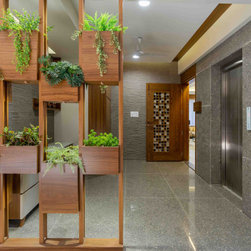 The wooden-plantation partition is designed to be an element of directionality as well as maintaining the partial privacy to common and personal foyer.