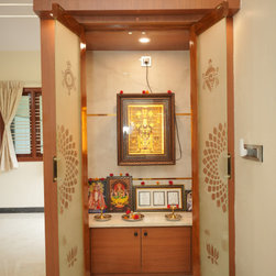 Kavya House - Pooja Unit Design | Reliable Dollars Colony Homzinterio