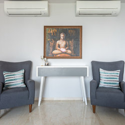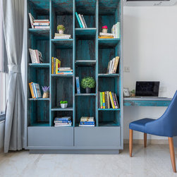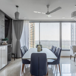 If you’re ever on the fence about colour-blocking in your interiors, this home just might be the nudge you need. It’s subtle without being boring and that is a combination that can never go wrong. We love how Sakshi, the designer, has used the magic of marbel and white to her advantage and created a design that looks stunning for a compact space like this one. Perfectly lit up corners, stunning accent pieces and wonderful artefacts add the right amount of character to this beautiful home.