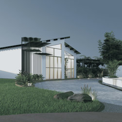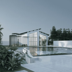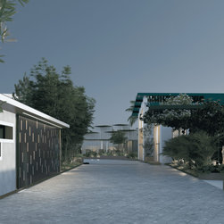 The villa resort's landscape design features minimalist elegance, using clean lines, native plants, and neutral tones to create a calm, tranquil atmosphere. Simple pathways and subtle water features enhance the peaceful connection with nature.