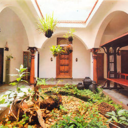 Inspired from the Tharavadu model, this style of architecture is from the eponymous state of Southern India, Kerala. Spread on an area of 3200 sft. , this 7000 sft villa has a distinctive feature, the Nadumuttom (central courtyard) which is also the Puja area. Paddipura (front entrance) has also been traditionally designed & detailed out.