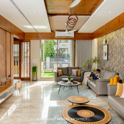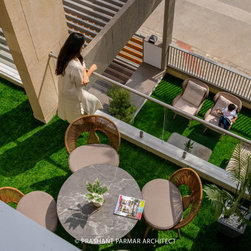 Since the initial stage of planning, the home was to be made breathable and extensive in every aspect like functionality, design, and aesthetics with full of natural light & ventilation. The spaces have been woven in such a way that it has interconnectivity within and outside capturing the essence of nature in every space creating stepped gardens on each floor. The extended roof slabs and the gardens on each floor eliminate the overheating effect during the scorching summer in Ahmedabad and allow the cool breeze to enter the interior spaces.