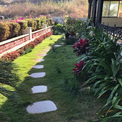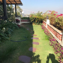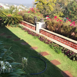 We did a full scale garden renovation to this place within 3 days. The old garden were filled with Trees, weeds and dead old lawn due to the recent house renovation. We worked for 3 days for more than 18 hours each day removing the old grass, weeds, plants and the soil. We replaced it with new soil with compost and installed a Buddha statue as it was the entryway along with the sunken steps and Lawn. Both the ends we used a combination of existing plants with new plants as borders.