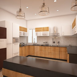 U- Shaped Kitchen with Breakfast Counter | Top Lifts for Wall Cabinets in Kitchen | Tall Unit and Microwave/ Oven Storage Space |