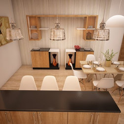 Dining Area with Creative Crockery Unit | Simple Modern Dining Table With Single Hanging Pendant Light | Breakfast Counter in Kitchen With Pendant Lights |